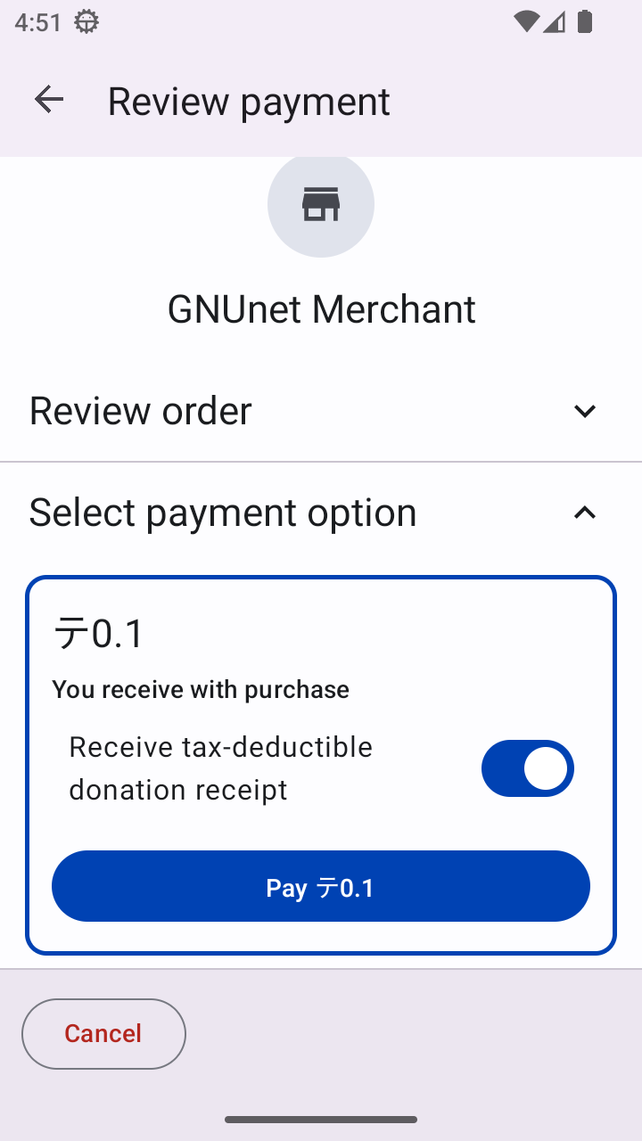 Merchant name – the organization receiving the donation (for example, GNUnet Merchant).