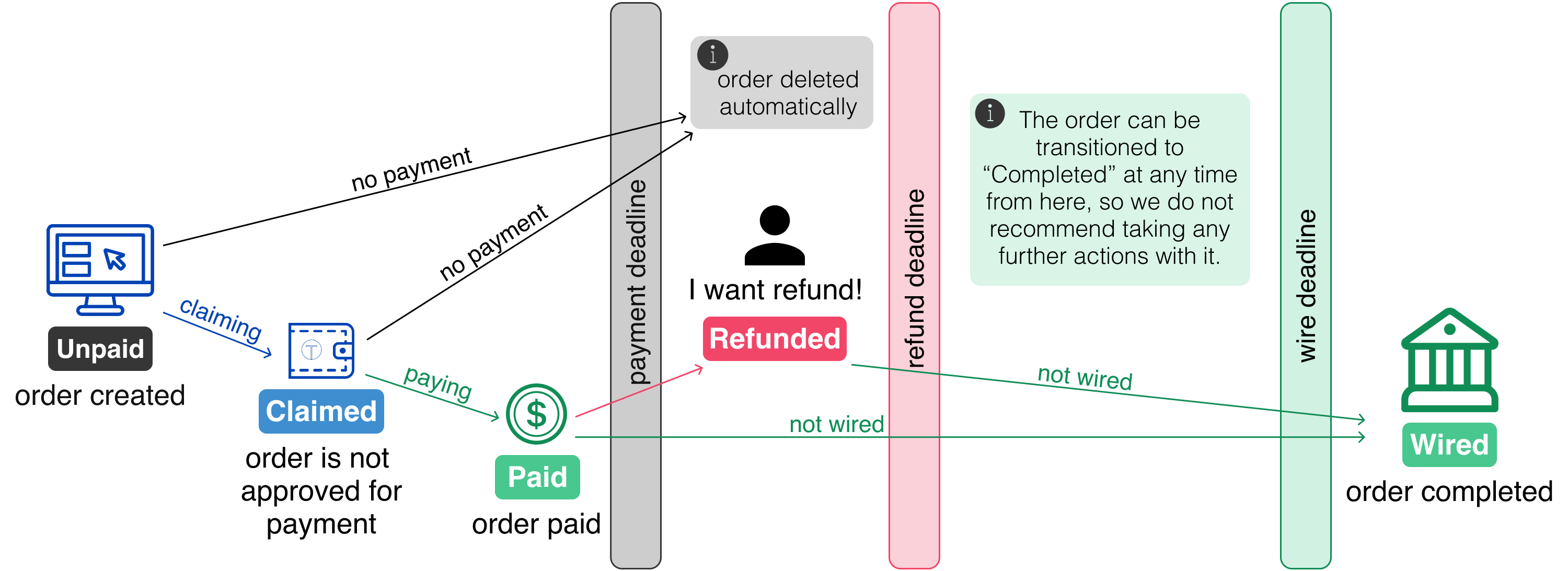 Overschrijf de standaard Taler instellingen voor deze order. Zie het Fasen bestellen voor een visueel overzicht van de levenscyclus van een order.