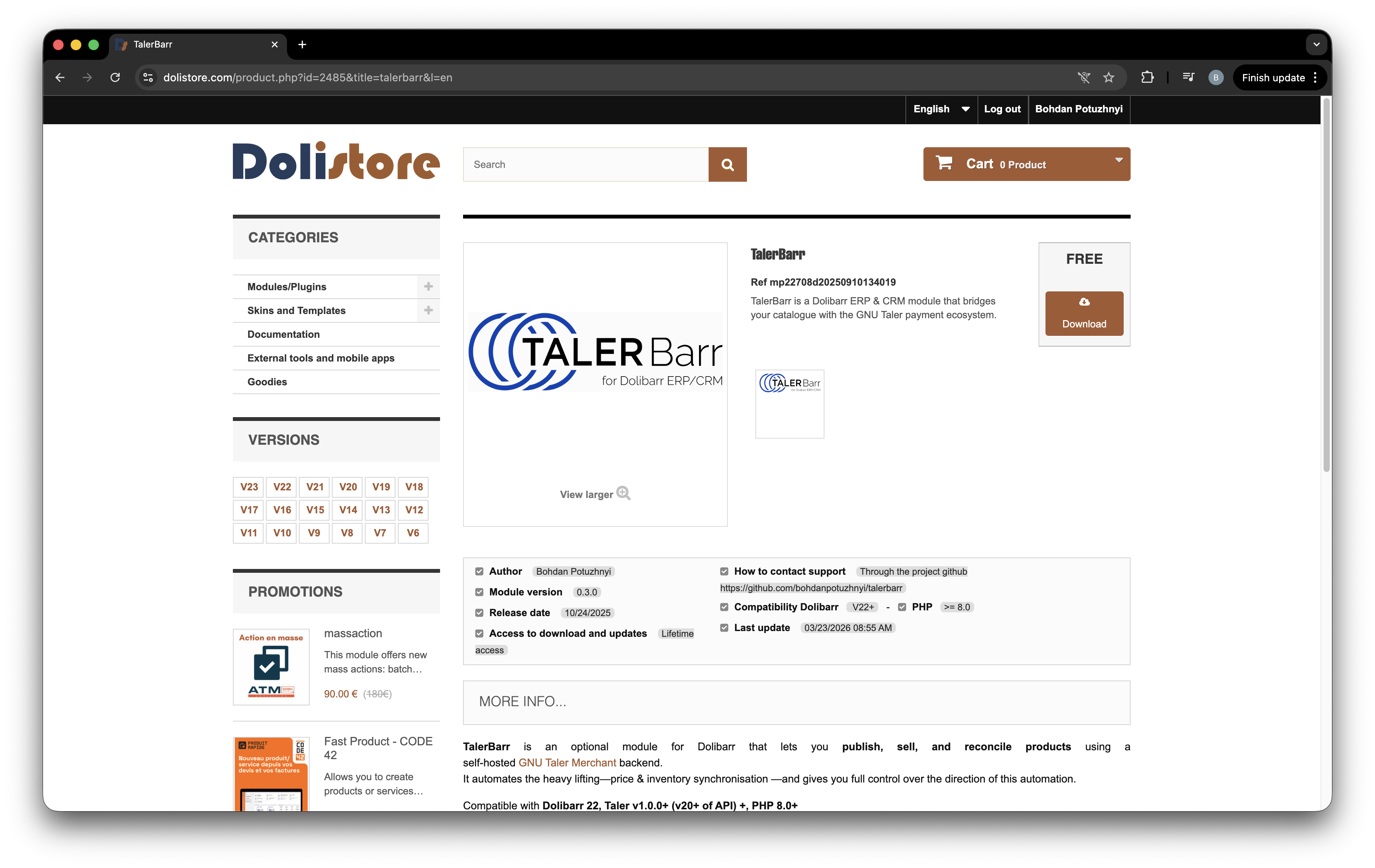 Before you install TalerBarr, make sure you already have a working Dolibarr instance. TalerBarr is a Dolibarr module and does not replace the ERP itself.