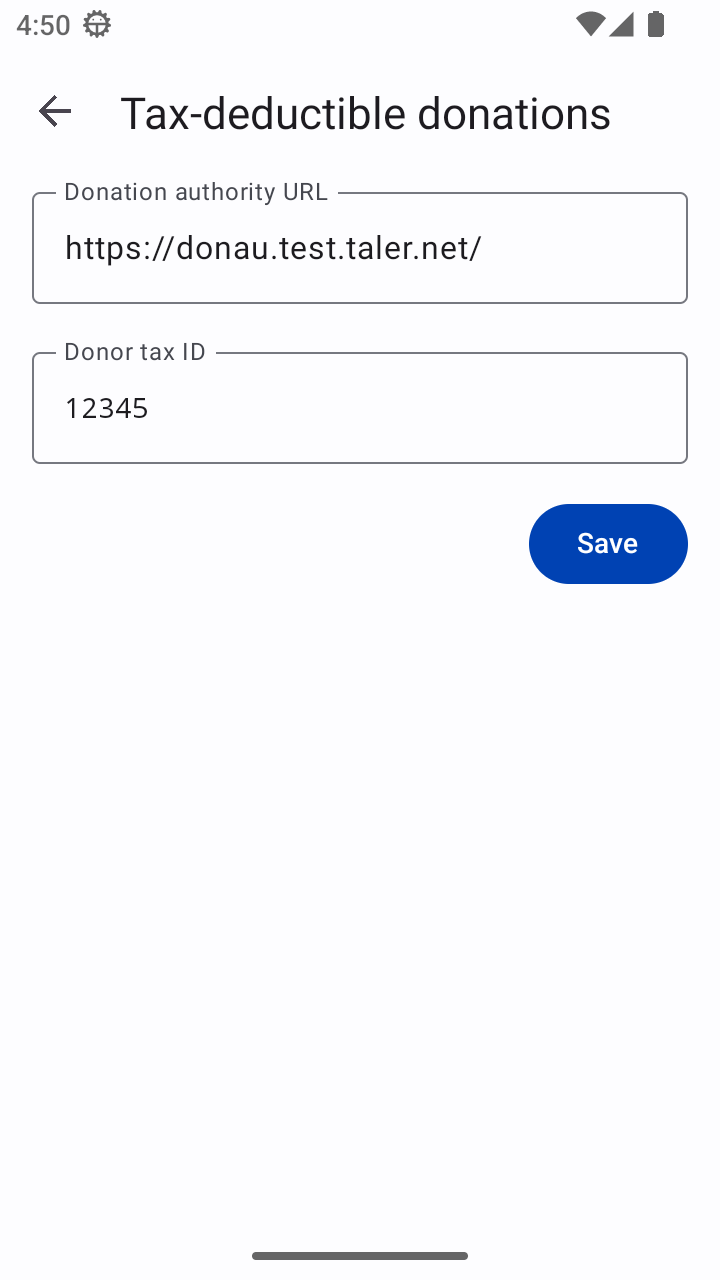If no donation authority is configured in your wallet, or if the configured tax authority